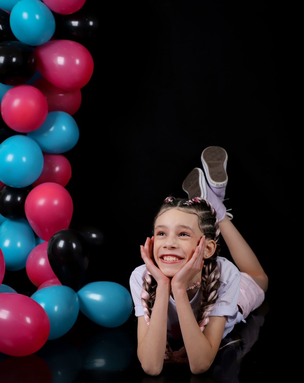 Aqui você escolhe as cores das bexigas e vamos tirar muitas fotos.